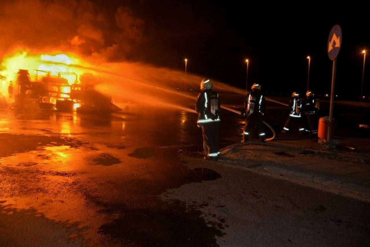 “مدني جدة” يسيطر على حريق شاحنة نقل مواد بترولية