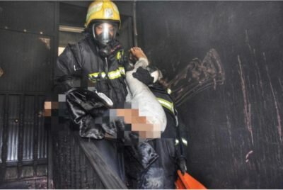 وأضاف القرني أنه على الفور جرى تحريك الفِرَق اللازمة وسيارات السلالم والمعدات المساندة، وبوصول الفِرَق للموقع، اتضح أن الحالة عبارة عن حريق بشقة بالدور الثاني بعمارة مكونة من دورين وملحق، حيث كان الحريق كلي بالصالة ووجد عدد من الأشخاص تحتجزهم السنة اللهب وعلى الفور تم مباشرة الحالة من قِبَل أفراد الإنقاذ والإطفاء باقتحام الموقع وإخراج عدد ٦ أشخاص والعمل على اخماد الحريق بشكل تام.