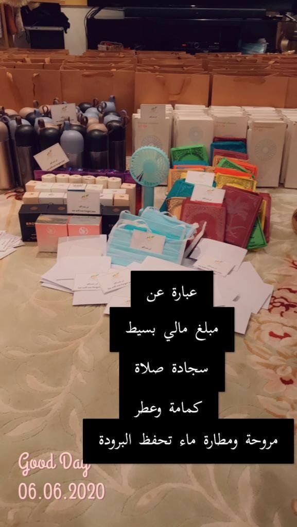 حيث تستهدف هذه المبادرة ٦٠ عاملاً من عمال النظافة يتم إختيارهم حسب الإحتياج وتُقدم لهم هدية بسيطة تحتوي على ” مبلغ مالي بسيط- سجاده صلاه صغيره – كمامات- قاروره لحفظ الماء -مروحه متنقله – عطر”.