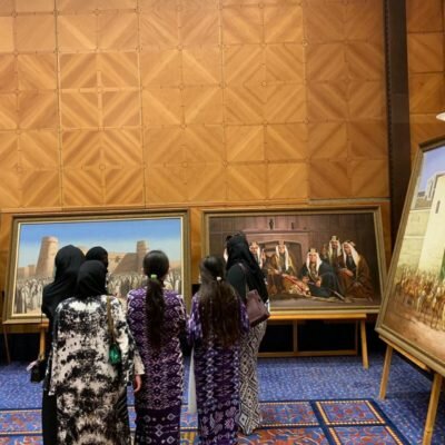 وجسدت اللوحات المعروضة سيناريو فني مرئي للتراث الحضاري في جميع مناطق المملكة، عبر لوحات زيتية بديعة، ابتكرها فنانون كبار.