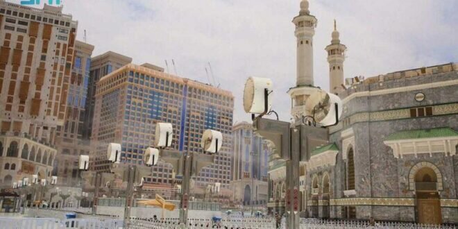 وفّرت الرئاسة العامة لشؤون المسجد الحرام والمسجد النبوي ٢٥٠ مروحة رذاذ لتهوية وتلطيف أجواء المسجد الحرام.
