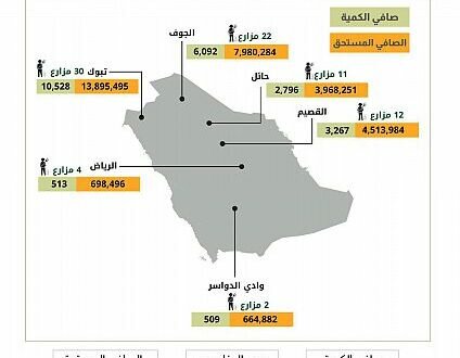 وبلغ إجمالي ما تم إيداعه لحسابات المزارعين البنكية لهذه الدفعة مبلغ (31.721.392) ريالاً، لصافي كمية مستلمة (23.705) أطنان، وذلك لعدد (81) مزارعاً، وبذلك يبلغ إجمالي ما تم إيداعه منذ بداية الموسم مبلغ (597.135.230) ريالاً لعدد (1696) مزارعاً وبكمية (454.439) طنًا.