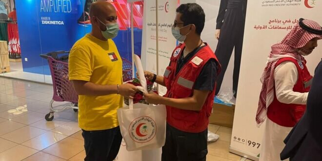 تشارك هيئة الهلال الأحمر السعودي بمحافظة جدة في اليوم العالمي للإسعافات الأولية من خلال إقامة اركان توعويه وتثقيفيه في بعض الاسواق بالمحافظة.