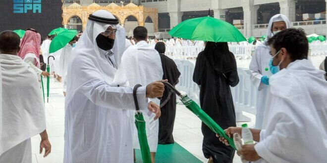 وزعت الرئاسة العامّة لشؤون المسجد الحرام والمسجد النبويّ ممثّلة في الإدارة العامّة للخدمات الاجتماعيّة 4 آلاف مظلّة على الزوّار والمعتمرين في صحن المطاف، والعاملين في المسجد الحرام.