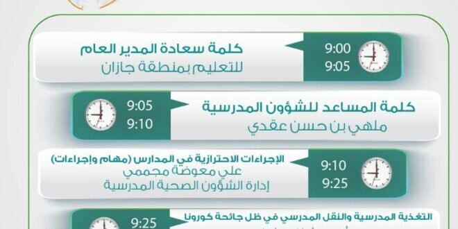 وأكد الدكتور إبراهيم بن محمد أبوهادي على مديري مكاتب التعليم ومديري ومديرات المدارس الالتزام بالأدلة والتعليمات المنظمة للعمل التعليمي والعودة الدراسية الآمنة وضرورة مراعاة المؤشرات المختلفة التي ينبغي قياسها بشكل منتظم،، وأشار إلى أهمية توفير البيئة التعليمية الآمنة إنشائيا لأبنائه الطلاب وبناته الطالبات والتي تهتم أيضا بتطبيق الإجراءات الاحترازية، والحرص علي توفير بيئة تعليمية آمنة اجتماعيا تسهم في بناء شخصياتهم، مع الاهتمام بتلقي الطلبة المقدار الكافي من التحصيل الدراسي.