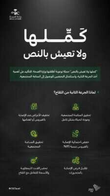 نفذ مستشفى فيفاء العام اليوم الجمعة برنامج توعوي بجامع التوحيد بفيفاء ضمن الحملة الموسعة التي أطلقتها وزارة الصحة لتوعوية بعنوان ” كملها ولا تعيش بالنص” والتي تهدف الى التأكيد على أهمية أخذ الجرعة الثانية من لقاح كورونا واستكمال التحصين للوصول للمناعة المجتمعية بإذن الله.