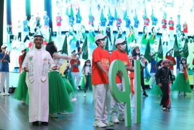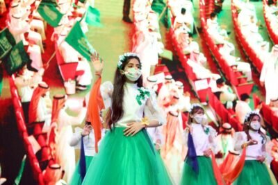 وعبر 9 لوحات فنية تغنى طلاب وطالبات تعليم جازان بوطنهم وقادته في أوبريت “انتصار السماء” الذي تناول التضحيات التي بذلها المؤسس طيب الله ثراه من أجل استرداد دولة آبائه وأجداده وحلمه الذي سعى من أجل تحقيقه وهو تأسيس هذا الكيان العظيم دولة تحت اسم المملكة العربية السعودية، كما تناول تجديد الولاء والبيعة لقادة هذه البلاد بهذه المناسبة السعيدة، بالإضافة إلى المرأة السعودية وما وصلت إليه من تعليم وتمكين، وما حققته من نهضة في هذه البلاد ، وإخوانها من الرجال وما يمتازون به من خصال حميدة على رأسها الشجاعة والوفاء بالعهد، كما تناول “انتصار السماء” رؤية المملكة 2030 وقائدها ملهم الشباب ولي العهد، وما حققه التعليم من نجاحات في ظل الجائحة التي طالت العالم كله بدءا بنجاح التعليم عن بعد وانتهاء بعودة التعليم الحضوري، وتغنى الأوبريت الوطني بجازان أرض الفل والكاذي والشعر والأدب التي ابتهج أبناؤها بيوم الوطن مرسلين تحاياهم وسلامهم لوطنهم الغالي وقادته المخلصين الأوفياء فيما اختتم الأوبريت لوحاته الفنية باستعراض صفات الشعب السعودي وما اتصف به وطنهم الذي أصبح رمزا للتسامح والعدل عالميا والنهضة والتقدم والرقي.