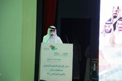 برعاية صاحب السمو الملكي الأمير محمد بن عبد العزيز بن محمد بن عبدالعزيز أمير منطقة جازان بالنيابة وحضور وكيل الإمارة الدكتور عبدالله بن محمد الصقر احتفت الإدارة العامة للتعليم بمنطقة جازان باليوم الوطني الحادي والتسعين وذلك على مسرح مركز الأمير سلطان الحضاري بمدينة جيزان.