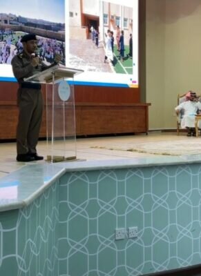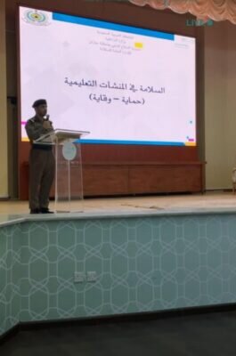 بدوره قدم العقيد محمد الغامدي مدير الإدارة العامة للسلامة بمديرية الدفاع المدني بالمنطقة ورقة عمل بعنوان “السلامة في المنشآت التعليمية حماية – وقاية” تناول من خلالها الحديث عن تاريخ وأهمية الشراكة القائمة ما بين التعليم والدفاع المدني وسلط الضوء لأهمية الالتزام بتطبيق متطلبات ولوائح وتعليمات السلامة في المنشآت التعليمية ، و قدم شرحاً موجزاً لمهام مسؤولي ومنسقي السلامة بالمنشات التعليمية، و استعرض الغامدي خلال ورقته إحصائية لحوادث الحريق والإنقاذ بالمرافق التعليمية خلال خمس السنوات الأخيرة والتي وضحت انخفاض معدلات الحوادث بالمنشآت التعليمية وهي نتاج للعمل الجاد من قبل المعنيين بالسلامة في وزارة التعليم والإدارات التعليمية بالمناطق ، كذلك قدم شرحاً حول الآلية المتبعة لتنفيذ عمليات الإخلاء بالمدارس ودعا لأهمية تعزيز الوعي الوقائي بين جميع الفئات التعليمية مع الاستفادة من جميع البرامج والمواد التوعوية التي تنتجها المديرية العامة للدفاع المدني في مجال السلامة والتوعية الوقائية .