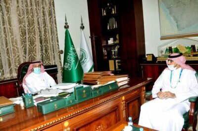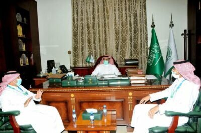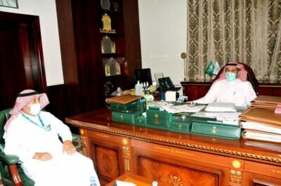 التقى سعاده محافظ القريات عبدالله بن صالح الجاسر بمكتبه صباح اليوم الاربعاء الموافق 1443/7/3 مدير بنك التنميه الاجتماعية الاستاذ سلطان بن ابراهيم الايداء و طلال بن راجي العبدلي المدير السابق للبنك.