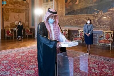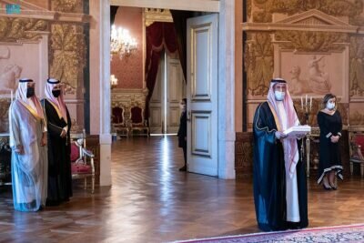 استقبل فخامة الرئيس مارسيلو ريبيلو دي سوزا رئيس جمهورية البرتغال، في القصر الجمهوري “أجودا” بالعاصمة البرتغالية اليوم، صاحب السمو الملكي الأمير سعود بن عبدالمحسن بن عبدالعزيز الذي قدم أوراق اعتماده سفيرًا لخادم الحرمين الشريفين لدى جمهورية البرتغال.