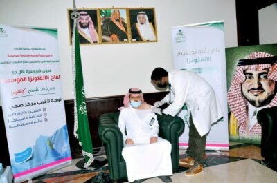 الذي بادر بأخذ اللقاح الانفلونزا وعدد من منسوبي المحافظه وسوف يتم تنفيذها باذن الله في جميع المراكز التابعه للمحافظه للرعايه الأولية للمواطنين والمقيمين.