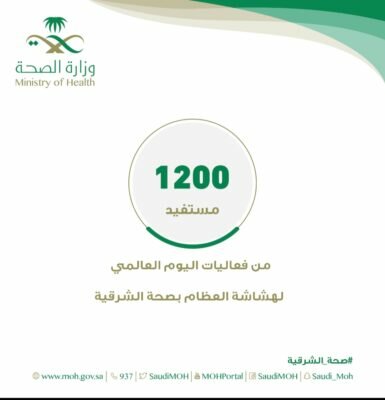 أكثر من١٢٠٠ مستفيد من الفعاليات التوعوية لليوم العالمي لهشاشة العظام بصحة الشرقية وبحضور مدير الشؤون الصحية الدكتور ابراهيم العريفي ومسؤلي الأقسام الصحية