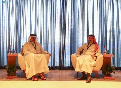 التقى صاحب السمو الأمير فيصل بن فرحان بن عبدالله، وزير الخارجية، اليوم، معالي وزير خارجية مملكة البحرين الدكتور عبداللطيف بن راشد الزياني، وذلك على هامش أعمال مؤتمر صير بني ياس المقام في إمارة دبي بدولة الإمارات العربية المتحدة.