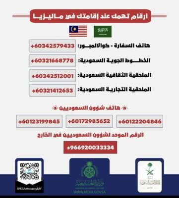 دعت سفارة المملكة في ماليزيا، المواطنين إلى الحيطة والحذر بسبب اضطراب الأحوال الجوية والفيضانات التي تشهدها بعض المدن والولايات إثر استمرار هطول الأمطار الغزيرة.