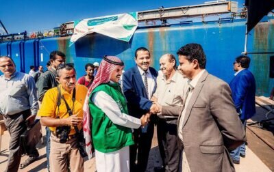 وصلت إلى ميناء الزيت في محافظة عدن، الدفعة السادسة من منحة المشتقات النفطية السعودية المقدمة من المملكة العربية السعودية عبر البرنامج السعودي لتنمية وإعمار اليمن إلى الجمهورية اليمنية، بكميات بلغت 60 ألف طن متري من الديزل، و30 ألف طن متري من المازوت؛ حيث بلغ ما تم توريده من المشتقات النفطية منذ بداية المنحة 506 آلاف طن متري؛ سداً للاحتياج الشهري المقدم من محطات الكهرباء في المحافظات اليمنية.