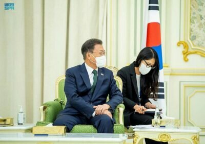 وعقد ولي العهد والرئيس الكوري جلسة مباحثات رسمية استعرضا خلالها العلاقات الثنائية بين البلدين الصديقين وسبل دعمها وتعزيزها في المجالات كافة، بالإضافة إلى بحث مستجدات الأوضاع الإقليمية والدولية والجهود المبذولة بشأنها بما يحقق السلام والاستقرار.