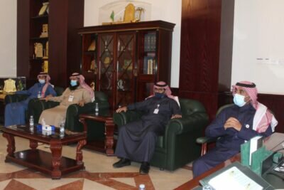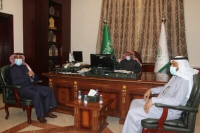 إستقبل سعادة محافظ القريات عبدالله بن صالح الجاسر بمكتبه بعد ظهر يوم امس الخميس الموافق ١٤٤٣/٧/٢هـ سعادة مدير عام فرع وزارة الموارد البشرية والتنمية الاجتماعية بمنطقة الجوف الاستاذ/ نايل بن عبدالعزيز الرويلي ومساعديه لقطاع العمل والتنمية ومدراء فروع الوزارة بالقريات وذلك ضمن برنامج جولة المدير العام بمحافظات المنطقه .
