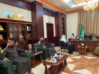 أستقبل سعادة محافظ القريات عبدالله بن صالح الجاسر صباح هذا اليوم الثلاثاء الموافق ٧ / ٧ / ١٤٤٣ هـ في مكتبه رئيس مجلس ادارة جمعية رعاية الايتام بالمحافظه د مشعل محمد العنزي وأعضاء مجلس الاداره .