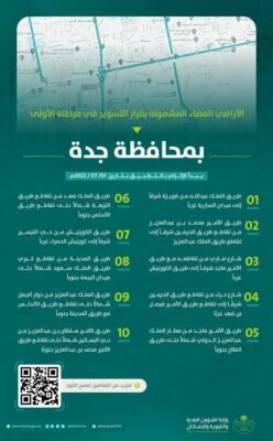 وأضافت أن القرار يشمل أيضا في مرحلته الأولى عددًا من الأراضي في حاضرة الدمام والخبر، ومنطقة مكة المكرمة، ومحافظة جدة، ومنطقة المدينة المنورة.