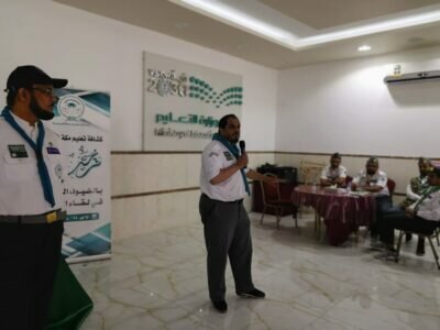أقيم اللقاء في مركز التدريب الكشفي بحي العزيزية،بحضور رئيس قسم النشاط الكشفي بادارة نشاط الطلاب بتعليم مكة، القائد الكشفي والمدرب الدولي المعتمد،الاستاذ زياد بن حسن قدير.وبمشاركة القادة الكشفيين بمدارس تعليم مكة.