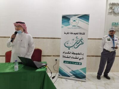 واستهل اللقاء بكلمة لمدير إدار النشاط الطلابي بتعليم مكة، الأستاذ نبيل بن بكر طيب، الذي أشاد بدور القادة الكشفيين في البرامج التطوعية، خصوصاً خلال جائحة (كورونا) كما أكد على أهمية وضع الخطط والبرامج التي تسهم في بناء الشخصية لدى الكشافين وتزودهم بالمعارف والمعلومات والمهارات التي تواكب تحقيق رؤية المملكة ٢٠٣٠م.
